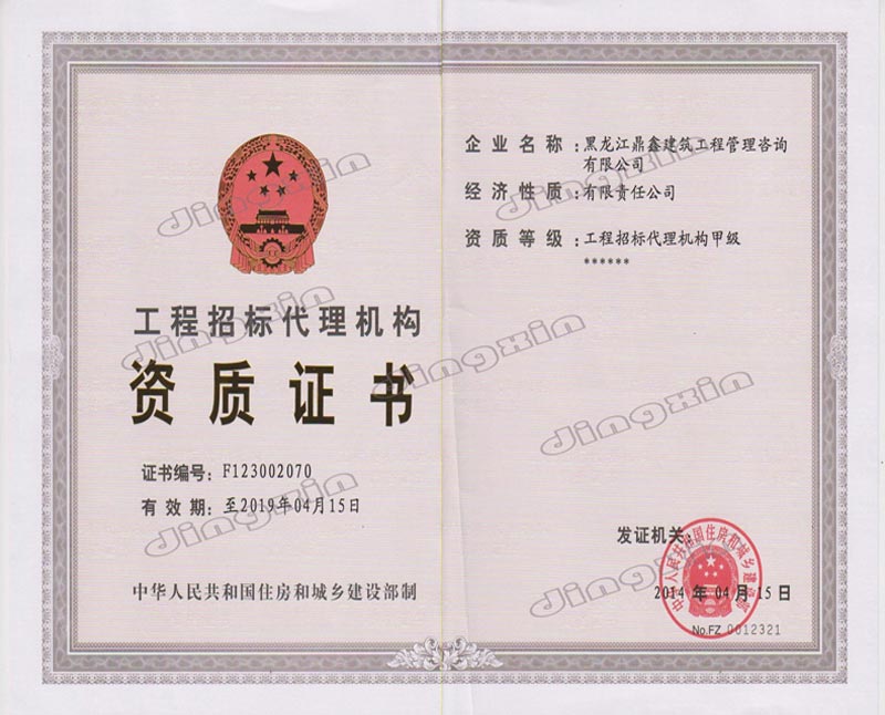 黑龍江鼎鑫建筑工程管理咨詢有限公司成立于2005年,注冊資金400萬元。具備中華人民共和國住房和城鄉建設部批準的工程招標代理機構資格、中華人民共和國財政部批準的政府采購招標代理機構資格、黑龍江省商務廳批準的機電產品國際招標代理機構資格、中華人民共和國住房和城鄉建設部批準的工程造價咨詢甲級資質、黑龍江省住房和城鄉建設廳批準的房屋建筑工程監(jiān)理乙級(市政公用工程監(jiān)理乙級資質)。主要從事建設工程及政府采購招標、造價咨詢、工程監(jiān)理、項目管理等業(yè)務。